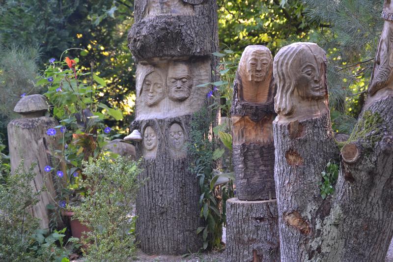 Ein weiteres Highlight sind die von Stefan Hunder, dem Mann der Inhaberin, gemeißelten Holzskulpturen, die sich märchenhaft und teils skurril optimal in die verwunschene Atmosphäre des Gartens einfügen. Wer sich selbst in der Holzschnitzerei ausprobieren möchte, kann einen Kurs buchen. Auch die Töchter sind in den Garten involviert. Margot Hunder hilft bei der Auswahl und dem Einkauf der Pflanzen während Maria Hunder Führungen durchführt, insbesondere mit Kindergärten und Schulklassen, aber auch für Erwachsene. „Kräuterfee“ Teresa Hunder sagt, dass alte Heilpflanzen und Gemüsesorten ein Schatz sind, der nicht verloren gehen darf. Hierfür leistet die Familie täglich vollen Einsatz in ihrem Garten. Mit den Führungen wollen sie ihre Begeisterung für die Schätze der Natur mit anderen teilen.