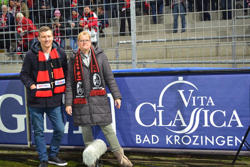 Björn Merk (Betriebsleiter Vita Classica) und Daniela Schild (Tourist-Information Bad Krozingen), waren zu Besuch im Schwarzwaldstadion des SC Freiburgs beim Spiel gegen RB Leipzig. Björn Merk erzählt über die neue Sponsoring-Partnerschaft und die Leidenschaft "Fußball".