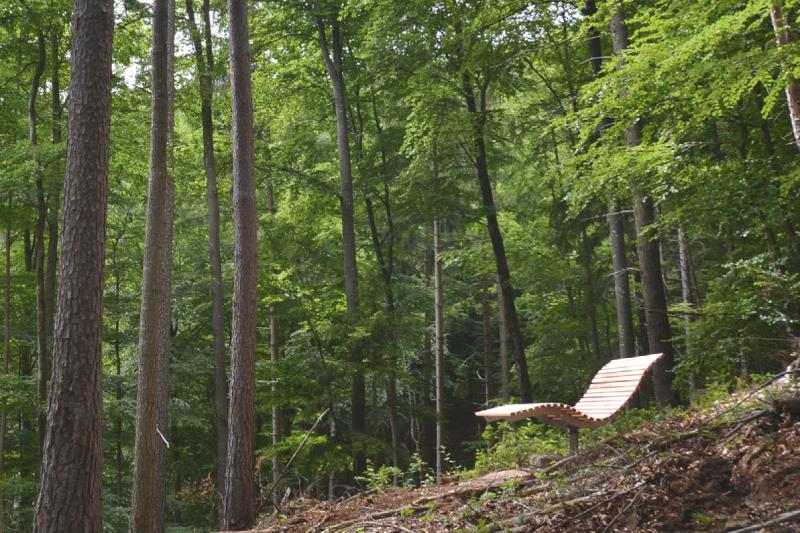 Beim Waldbaden geht es nicht darum, den Körper sportlich herauszufordern, sondern ihn ruhen zu lassen. Daher sollten Sie bei einem ausgedehnten Spaziergang auch kleine Ruhepausen einlegen und tief durchatmen. Setzten sich dabei an einen Baum, auf einen Baumstumpf oder auf eine der Himmelsliegen. Schärfen Sie dabei ganz entspannt ihre Sinne für den eigenen Körper und die Sie umgebende Natur.