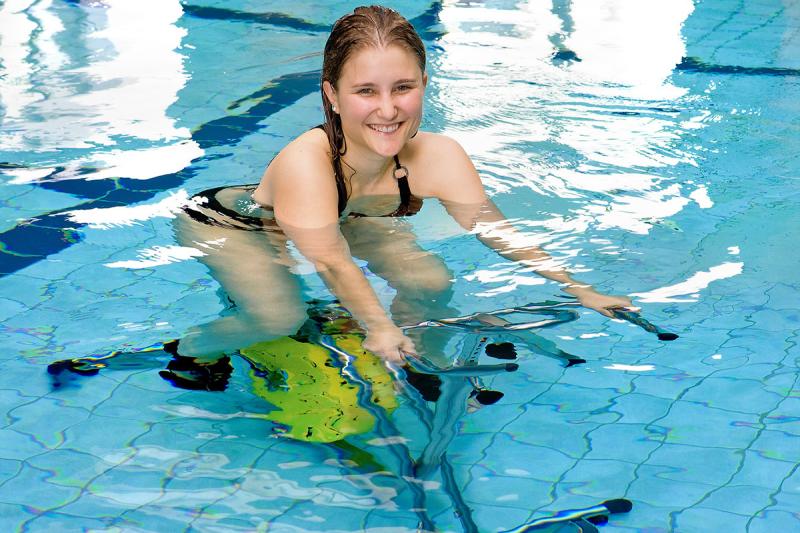 Beim AquaCycling wird auf einem speziell konstruierten Fahrrad trainiert. Das intensive Ganzkörpertraining im Mineral-Thermalwasser verbindet Sport und Spaß.